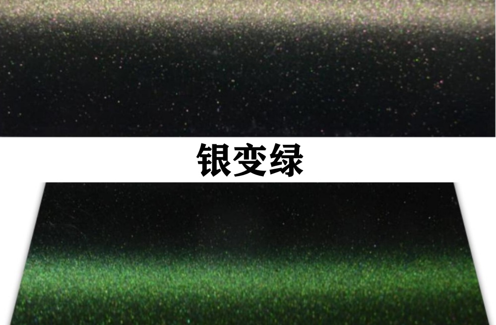 M-S01 Optically variable Magnetic pigment/ink Sliver-Green 5-37μm TOP VIEW-俯视图 SIDE VIEW-侧视图
