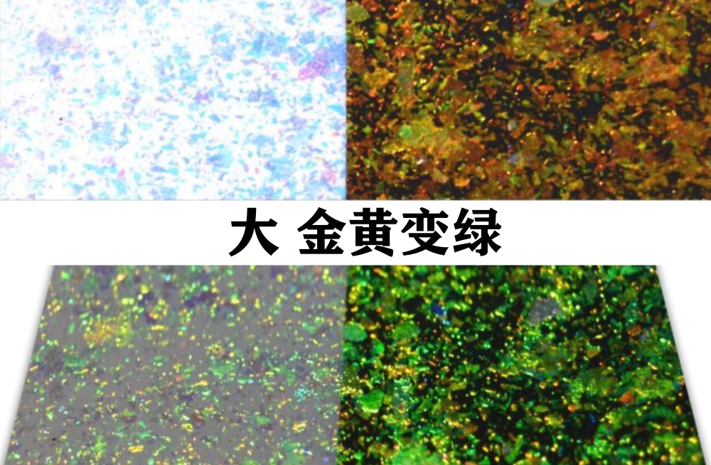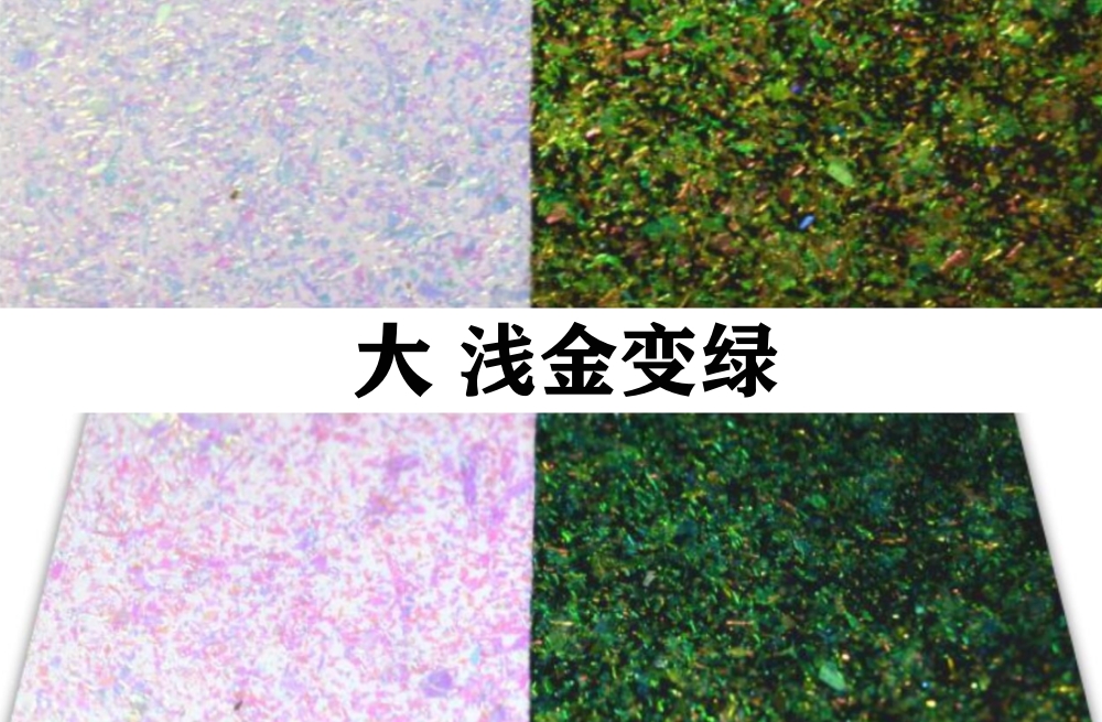 MoreT-04 Optically variable pigment/ink Gold-Green 200-300μm TOP VIEW-俯视图 SIDE VIEW-侧视图